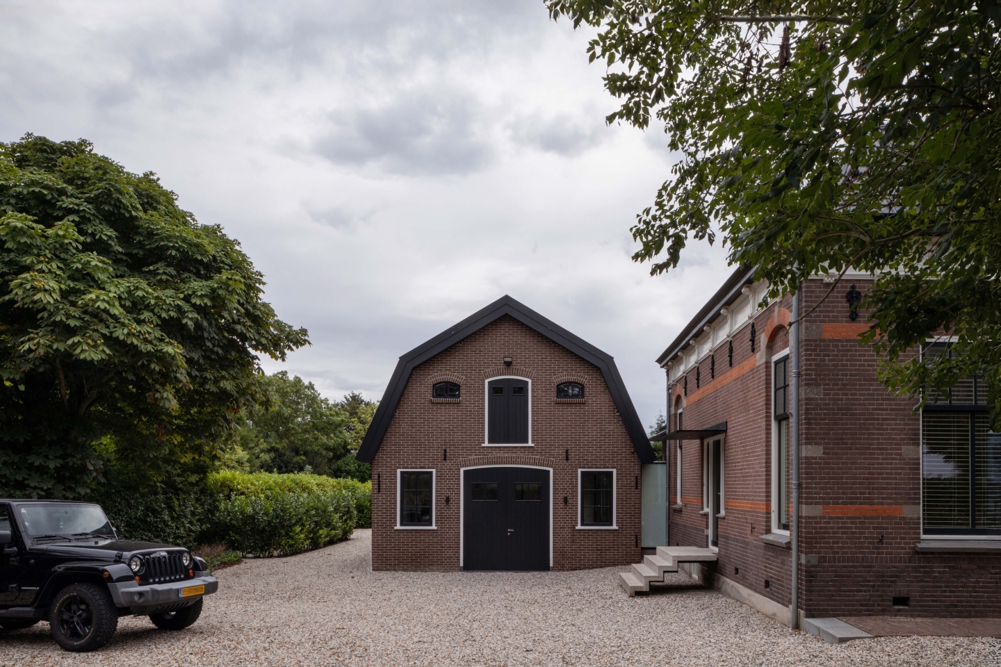 A monumental old Dutch house, designed by H.J.A. Hissink in 1908, and an adjacent workshop building have been thoroughly renovated and prepared for the future. The house has a square floor plan of nine by nine meters with a raised ground floor and an upper floor featuring cross-shaped roof trusses. The original layout, which included a central corridor with living functions on either side, was drastically altered in the 1970s, resulting in the loss or concealment of many authentic details. These interventions build upon the state that emerged fifty years ago while revealing the house's original characteristics. On the exterior of the house, the entrance staircase and canopy from the 1970s have been replaced by a concrete zigzag stair and ultra-thin steel canopy. This is the only visible addition on the street side that hints the large-scale renovation of both monuments.